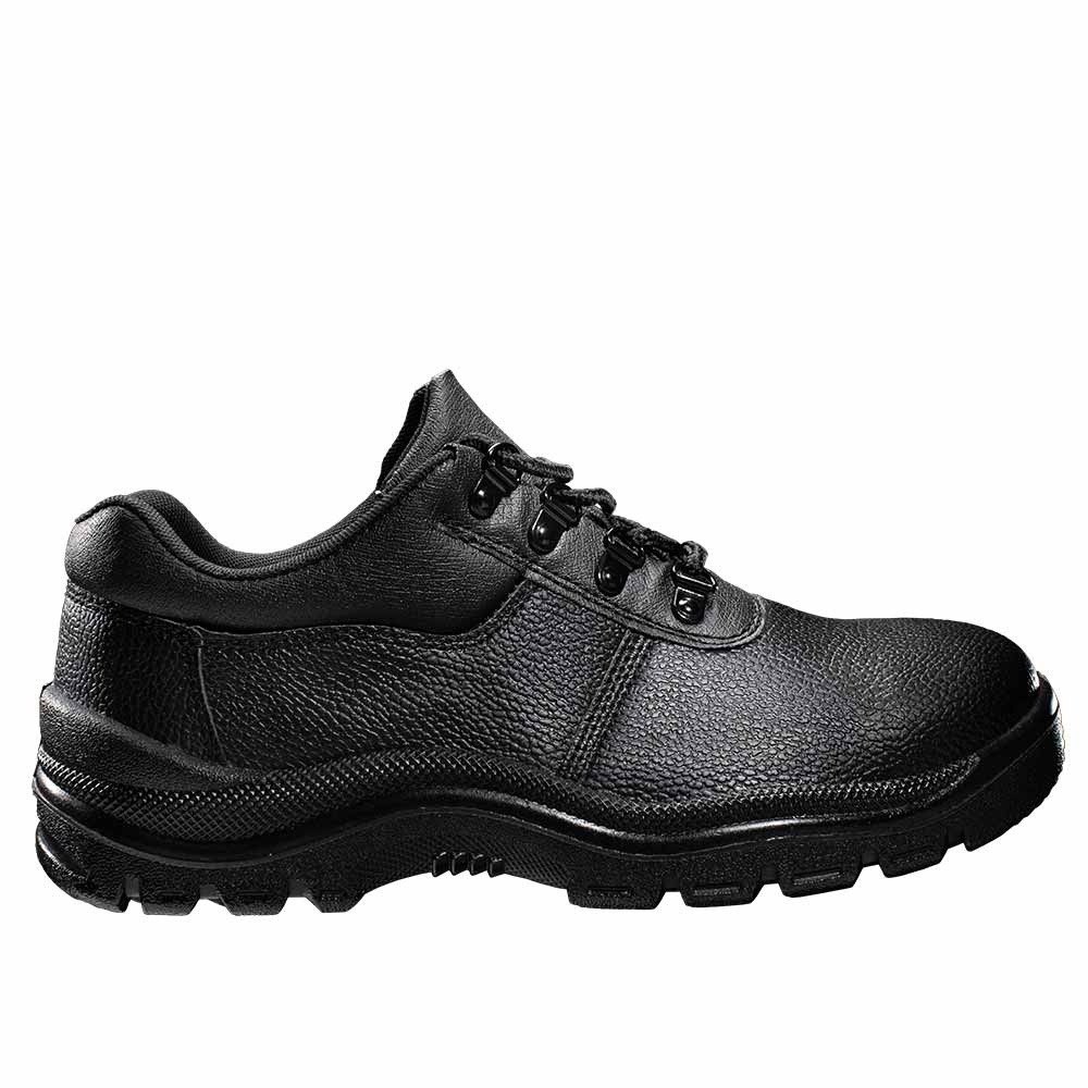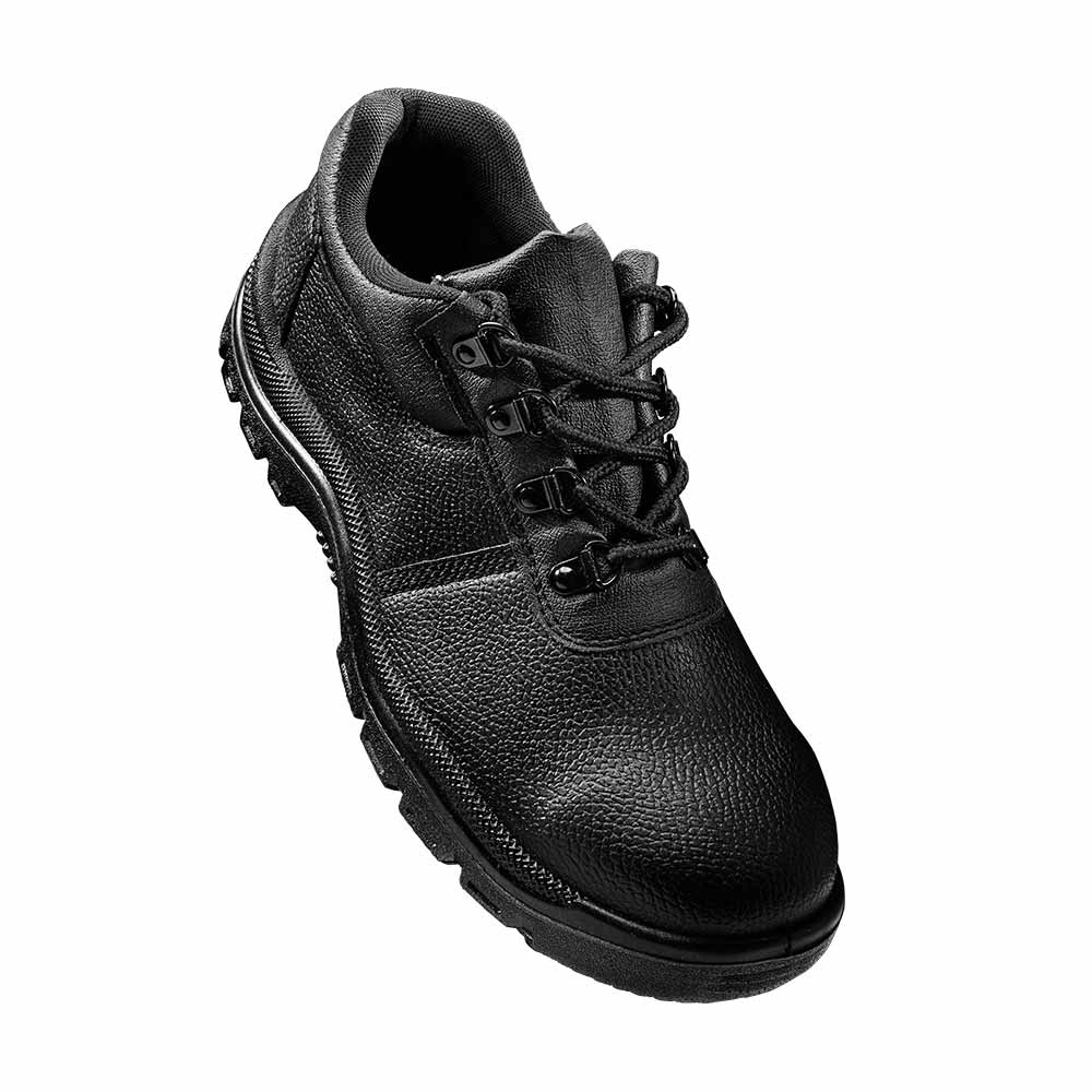 Outsole: Heavy-duty double density black PU sole with 200 Joules broad steel toe cap and 1100 Newtons flexible steel plate to prevent punctures. The sole is oil-resistant, anti-slip, energy-absorbing, and resistant to abrasion and penetration.